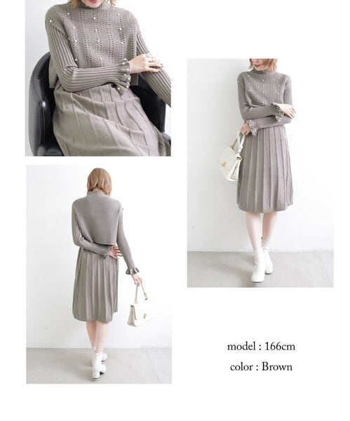 「パールベスト付きワンピース」は、オシャレなパールベストがドッキングした一枚で、コーディネートの幅が広がります。パールの光沢が優雅さを演出し、特別な日にもぴったりなアイテムです。