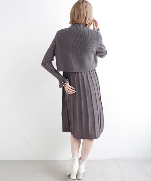 パールが可愛いベスト付のアンサンブルワンピース袖のフレアーのパールが技あり♪◎