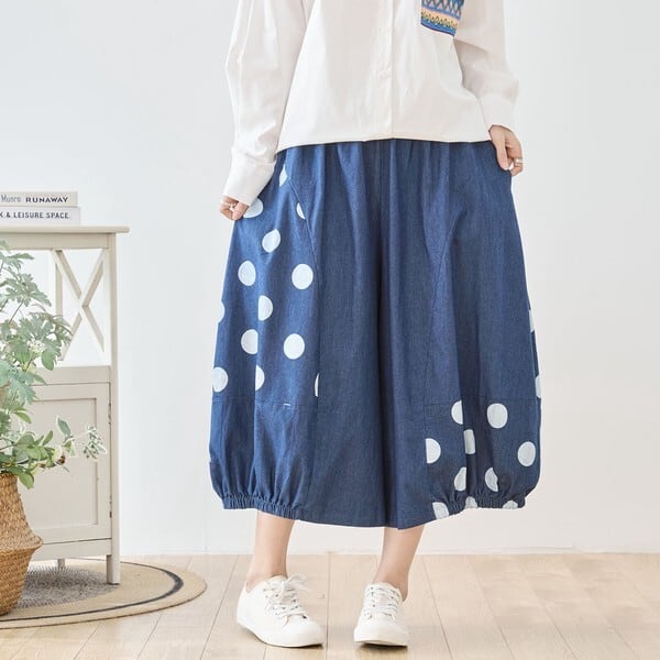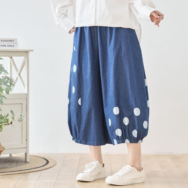 デニムパンツ/バルーンシルエット/ドット柄/大人カジュアル