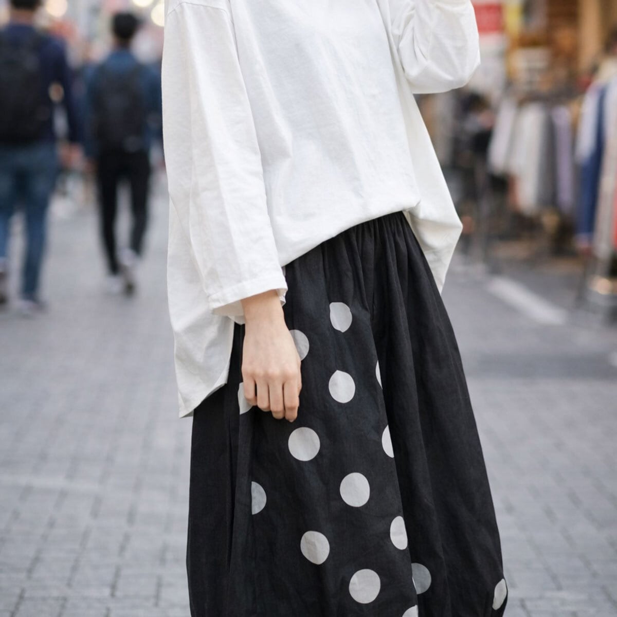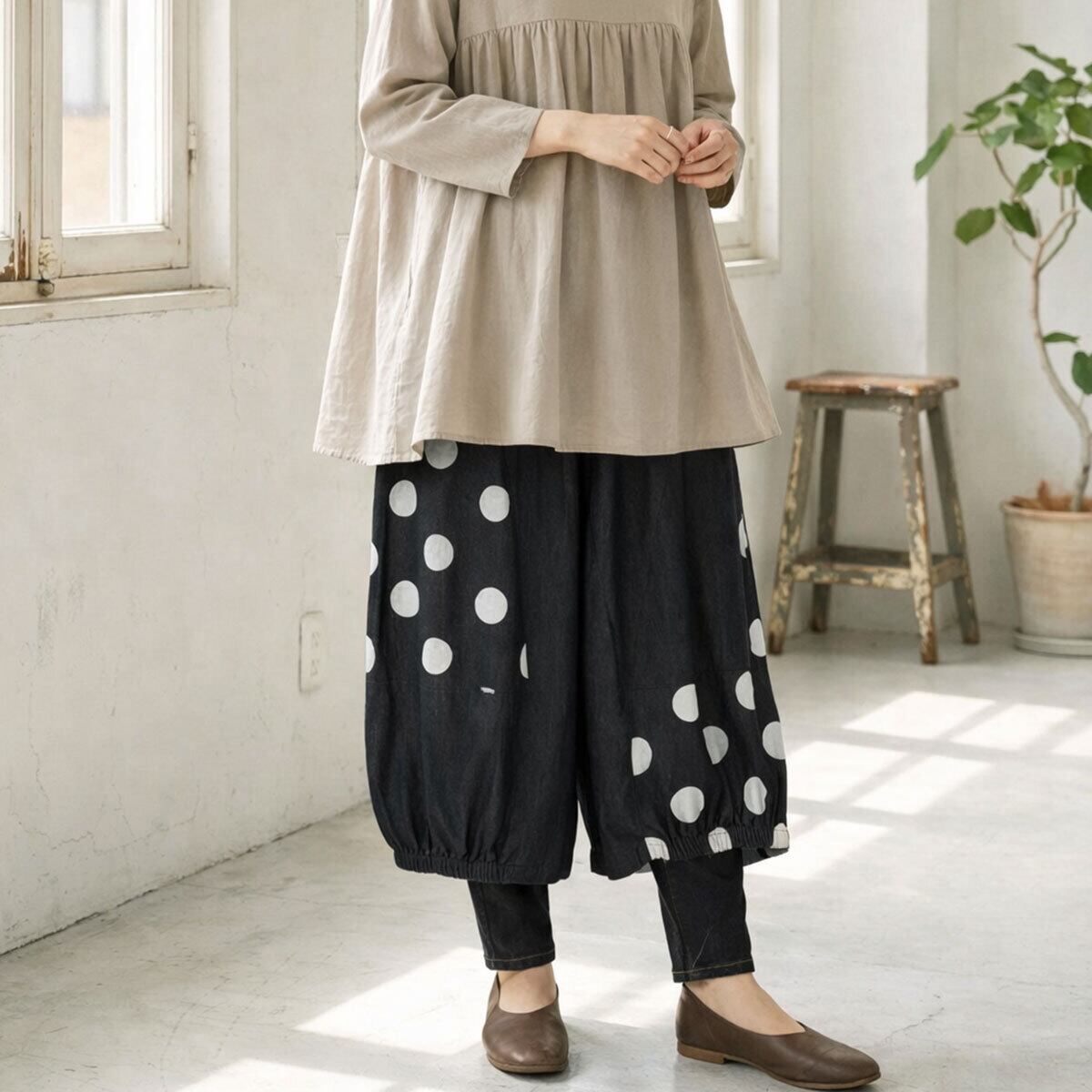 デニムパンツ/バルーンシルエット/ドット柄/大人カジュアル