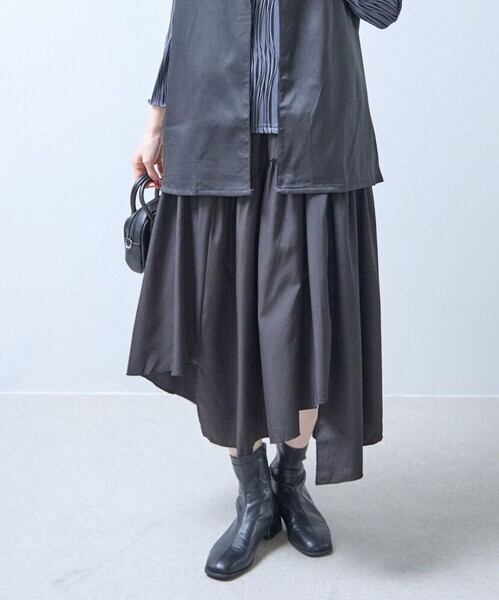 アシンメトリー ギャザースカート 変形ヘム モード系 韓国ファッション グブラック