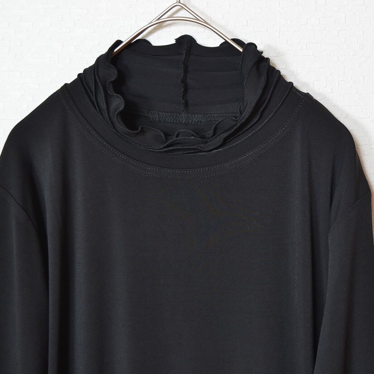 首元フリル ネット切替カットソー ハイネック インナー 韓国ファッション ブラック
