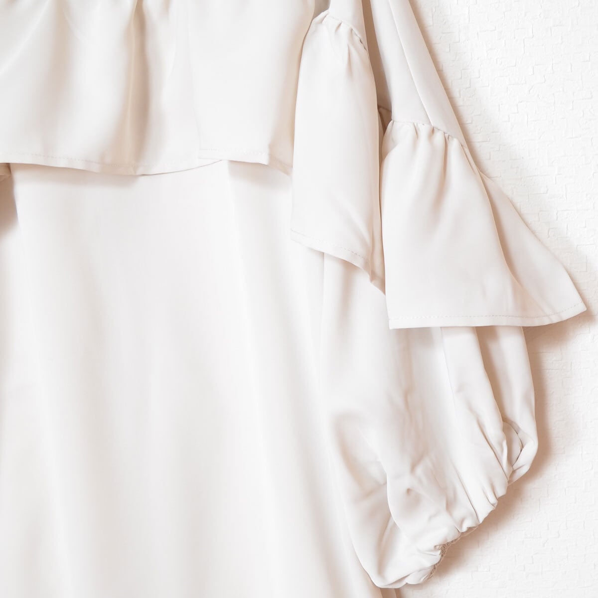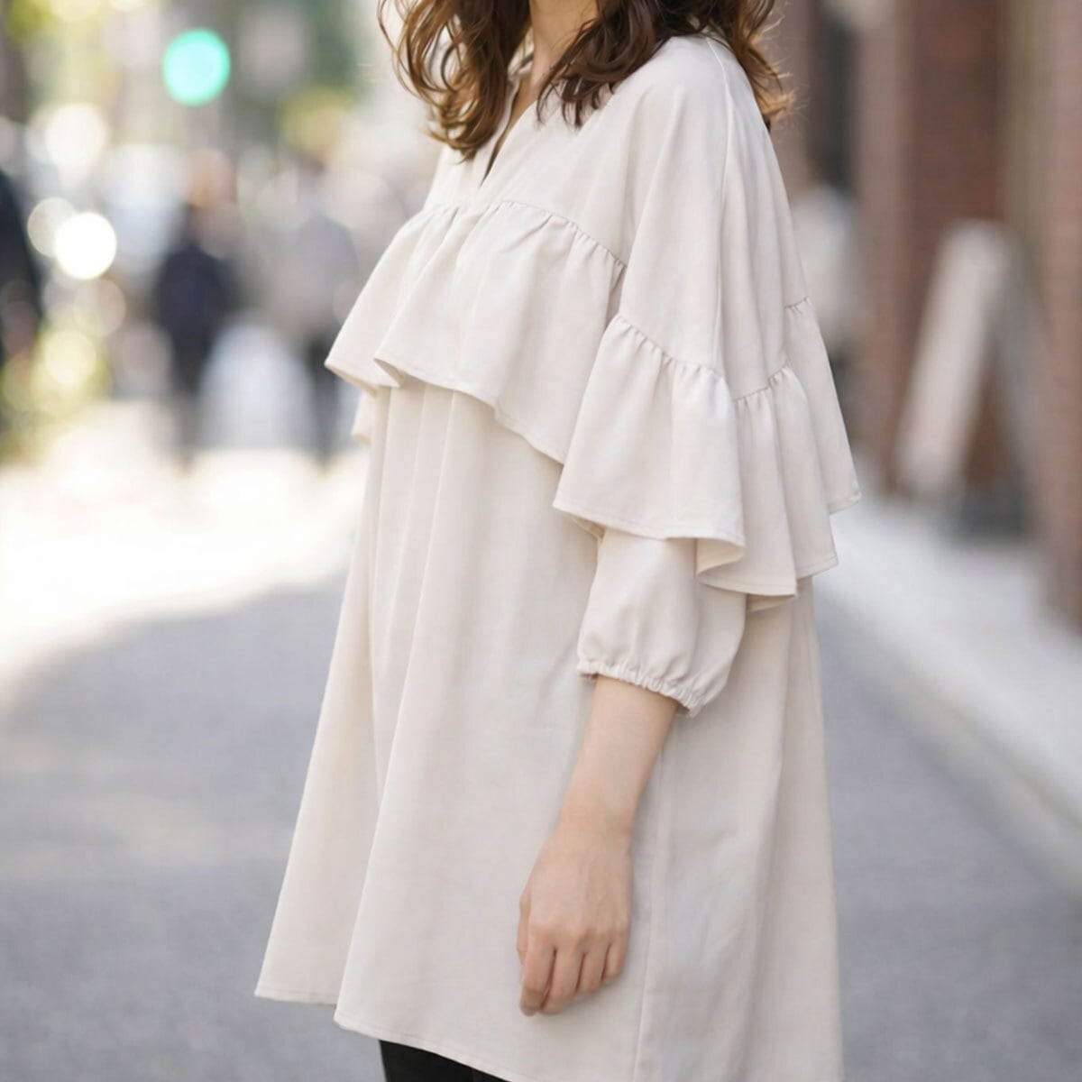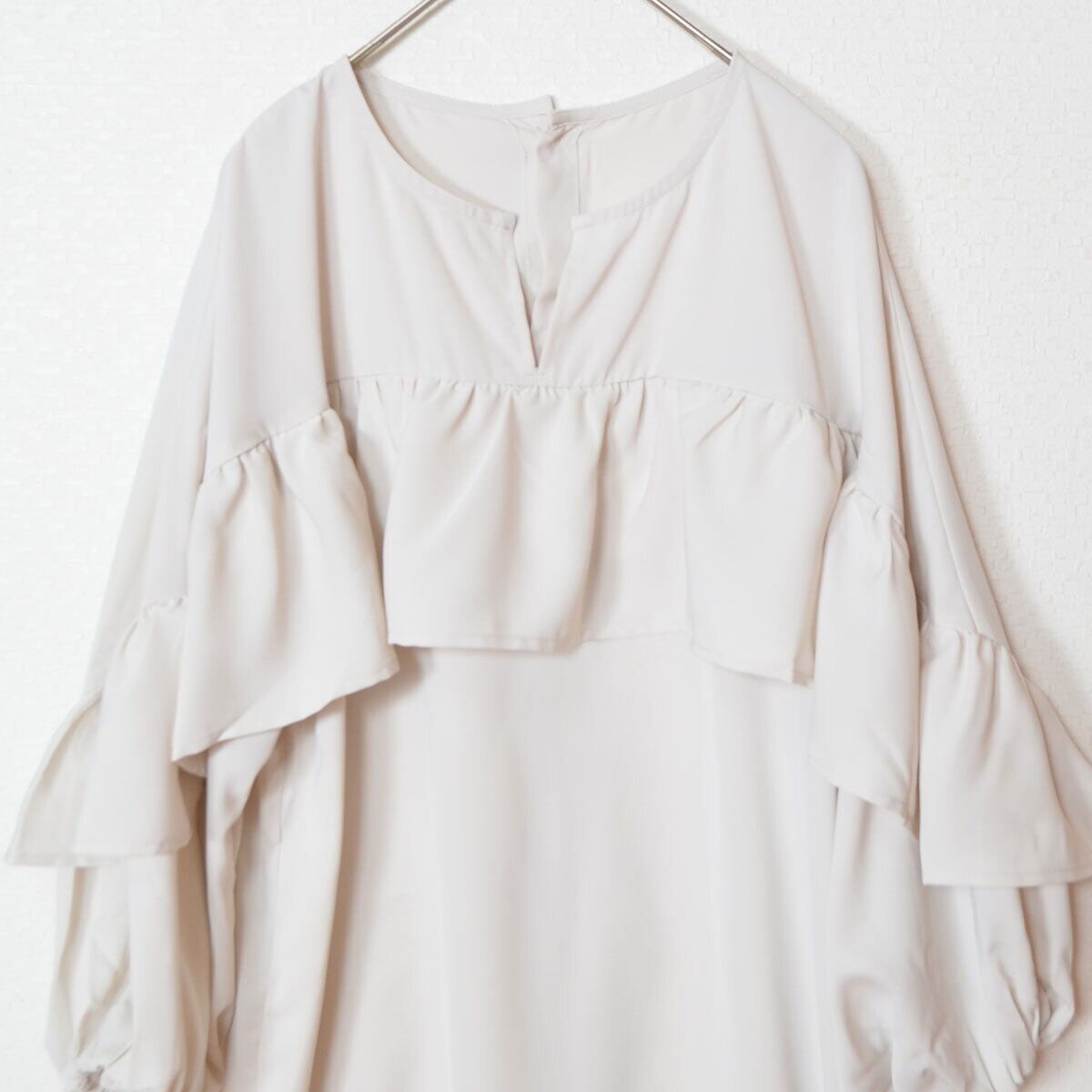 袖フリル チュニックブラウス バックボタン 韓国コーデ アイボリー
