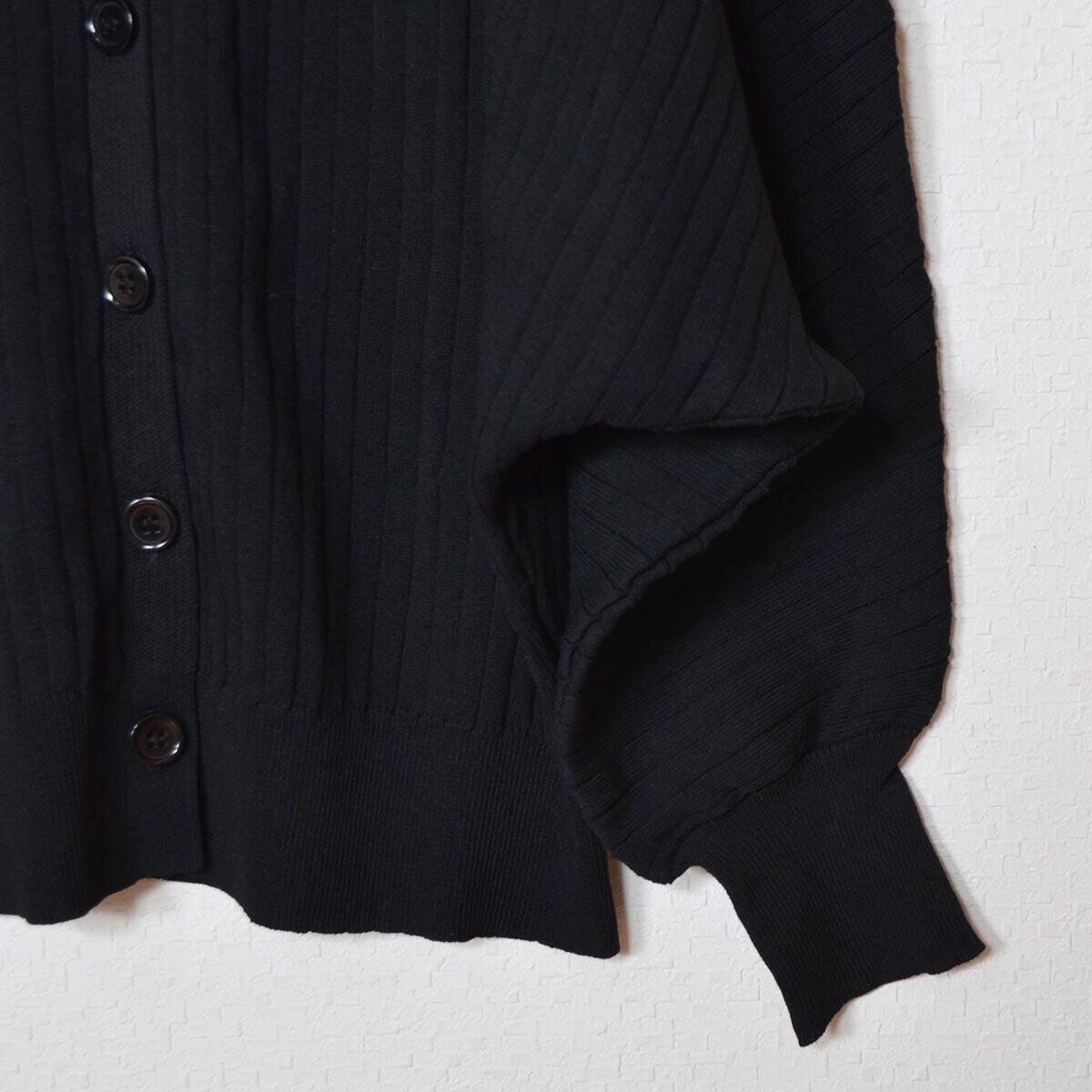 ドルマン リブニットカーデ Vネック 韓国っぽ レーヨン混 ブラック