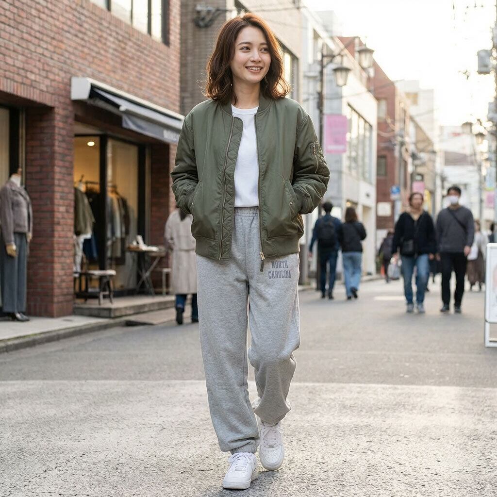 ・Relax Style: 同素材のスウェットやパーカーと合わせたセットアップ風スタイルも◎。お部屋でのリラックスタイムもおしゃれに過ごせます。